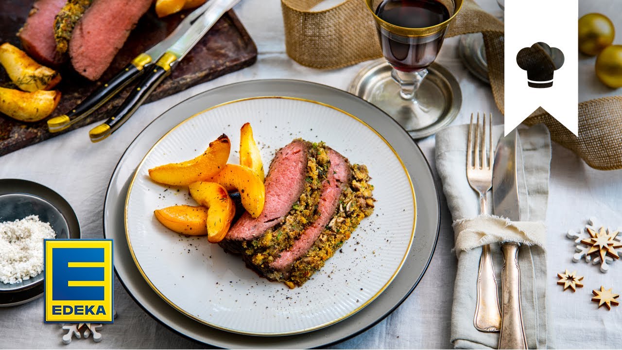Weihnachtsbraten Rezept Hirschrucken Mit Pilzkruste Und Quitten Edeka Youtube